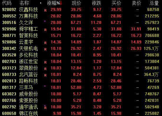 无人驾驶概念盘中强势上扬,截至收盘,万集科技、久之洋20%涨停,浙江世宝、路畅科技、索菱股份等亦涨停,豪恩汽电涨超9%。